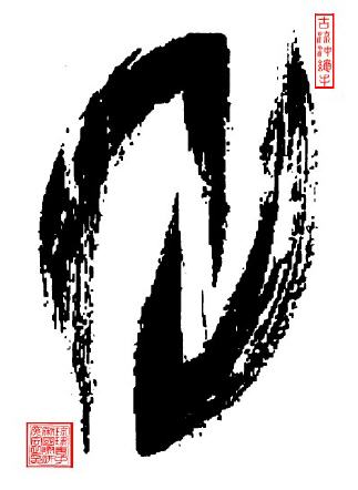 Das Koryu Uchinadi Emblem repräsentiert das Kissaki - die Spitze des Schwertes eines Samurai, und die Fude-saki - die Spitze eines Pinsels eines Malers.